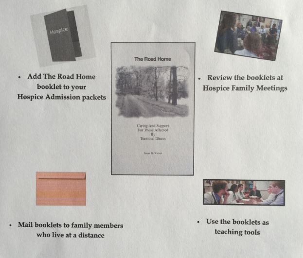 “The Road Home gives permission to the family/caregiver to cope with and process the experience, wherever they are at by normalizing feelings of helplessness and loss of control. At the same time, it presents comprehensive, concrete ways in which to frame terminal illness in an effort to move toward acceptance and letting go.” Martha Reichert, LICSW, Clinical Social Work Supervisor, CHI Health at Home